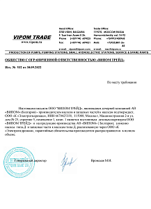 Выражаем благодарность за отличное качество поставляемой в наш адрес продукции, за хорошее исполнение договорных обязательств и надеемся на дальнейшее плодотворное сотрудничество.